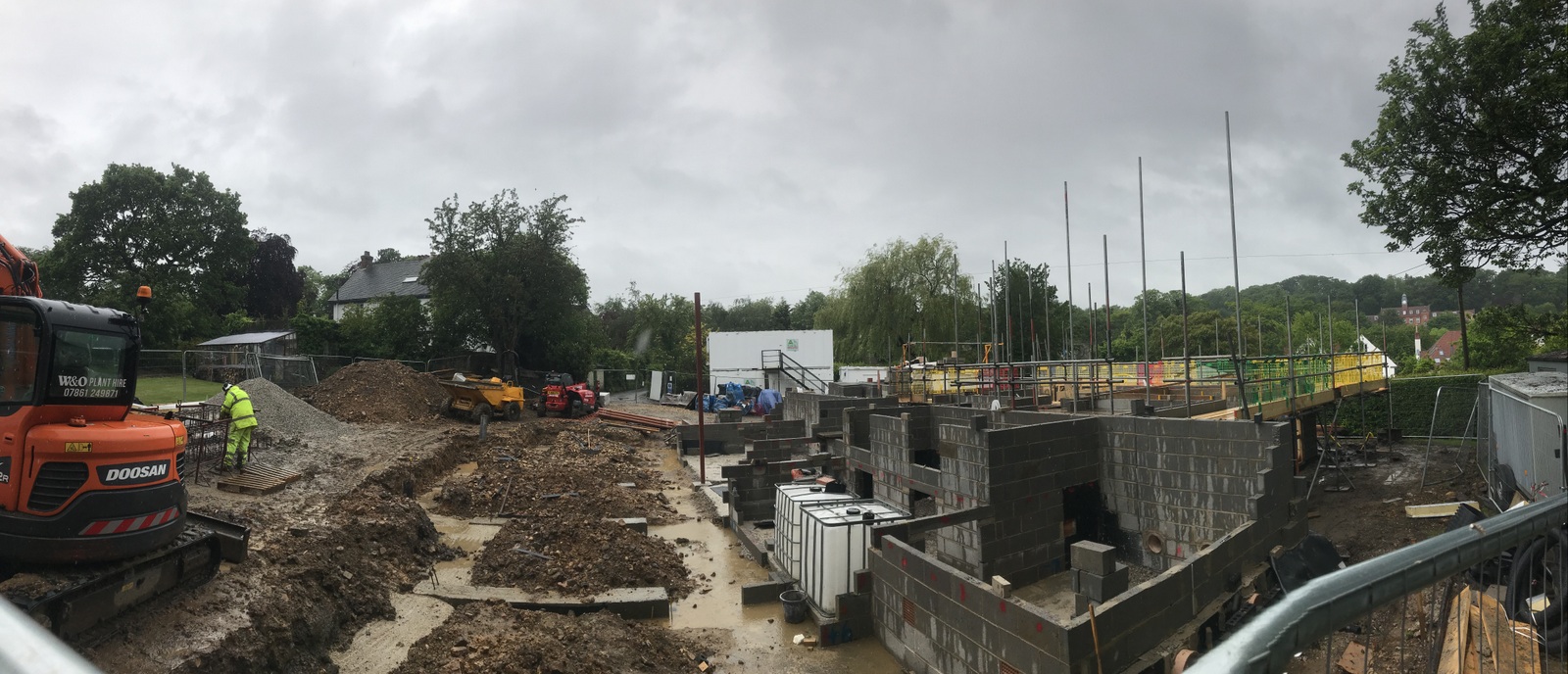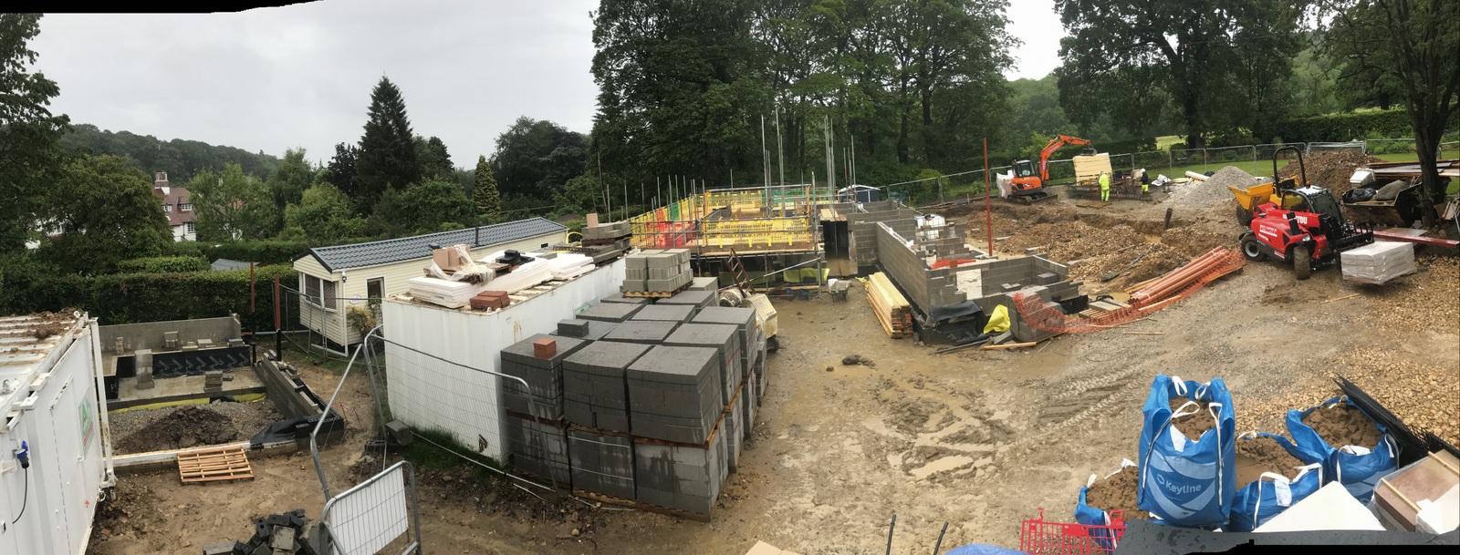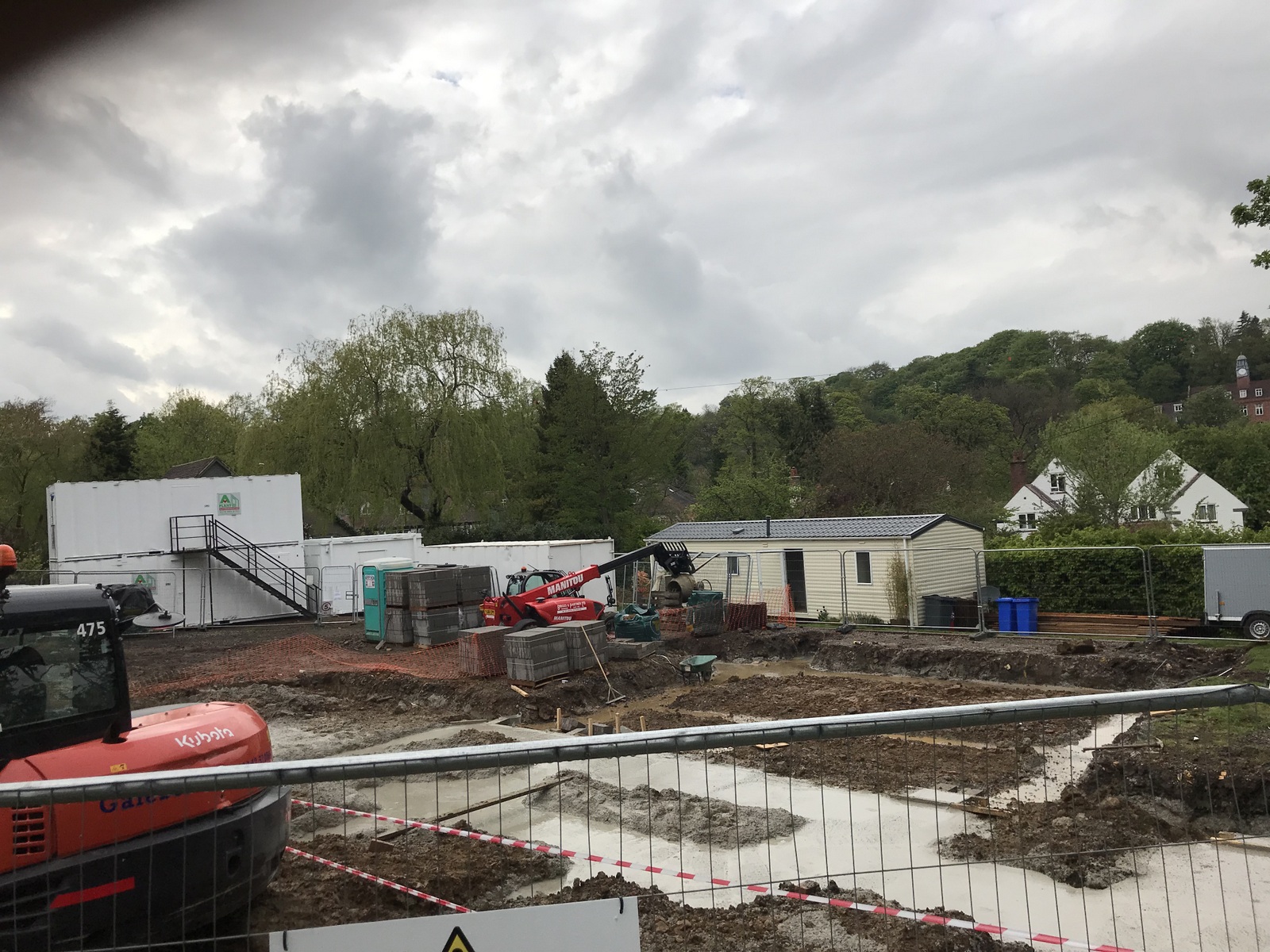 A four day week but things are moving nicely. The design has been updated and released from tender status and particularly QSP’s inputs on choice of materials and build methods. The engineer has been laying out the site. The lower ground floor foundations have been dug and ready for concrete to be poured . A steady stream of lorries come and go with materials, sheds and machinery. We’re also getting to know the guys and the feel of how the project will work.